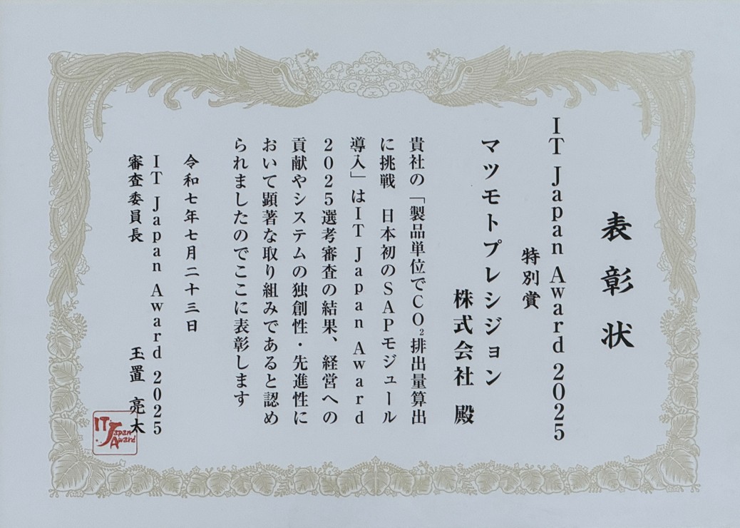 日経コンピュータ主催の「IT Japan Award 2025」でマツモトプレシジョン株式会社の取り組みが特別賞を受賞しました